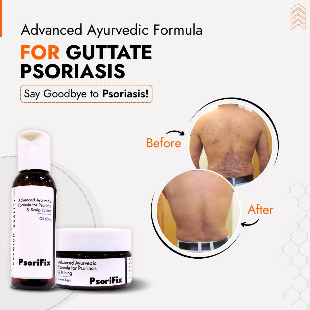 यह Guttate Psoriasis किट मेरे लिए बहुत असरदार रही। दो सप्ताह में छोटे लाल धब्बे हल्के पड़ने लगे। तेल राहत देता है और क्रीम लंबे समय तक असर करती है।