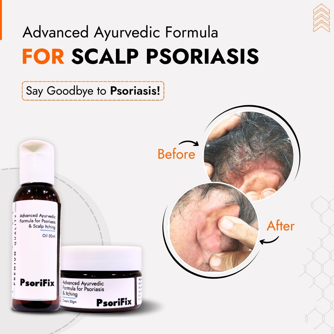 Handcrafted with potent Ayurvedic oils and time-tested herbs, Psorifix blends ancient wisdom with modern care — soothing irritation, reducing scaling, and restoring skin health gently, effectively, and safely.